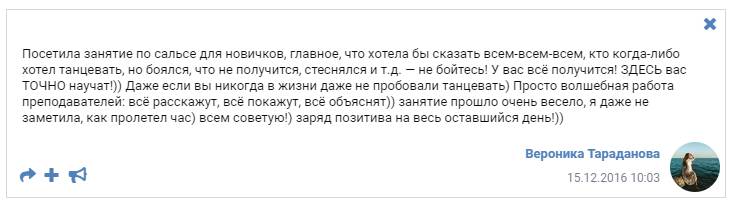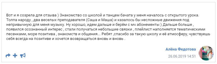 Мы записываем ваши контактные данные, показываем, где можно переодеться и провожаем вас в танцевальный зал.